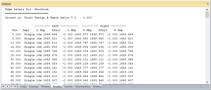 This function generates mini sections in the form of edge levels for those chainages that are already in the road file, and that have vertical alignment elevations.