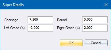 This function allows you to edit a superelevation or road width change point, using the right-click menu in the Edge Levels graphical view.