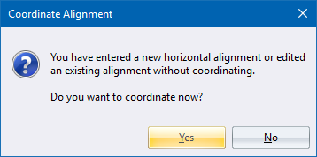 This function allows you to enter a new horizontal alignment, or edit an existing alignment.