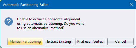 If Automatic was successful, then the Horizontal Alignment spreadsheet will be populated with the closest fit alignment and the function will end. If it was unsuccessful, you will be presented with the following options: