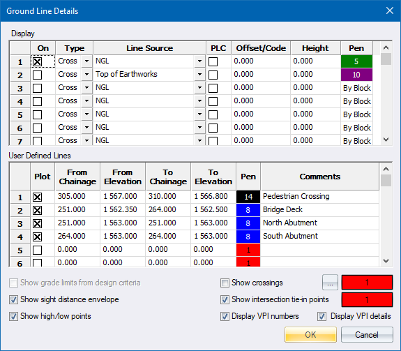 - The Ground Line Details allow you to set additional information to be displayed on the screen.
