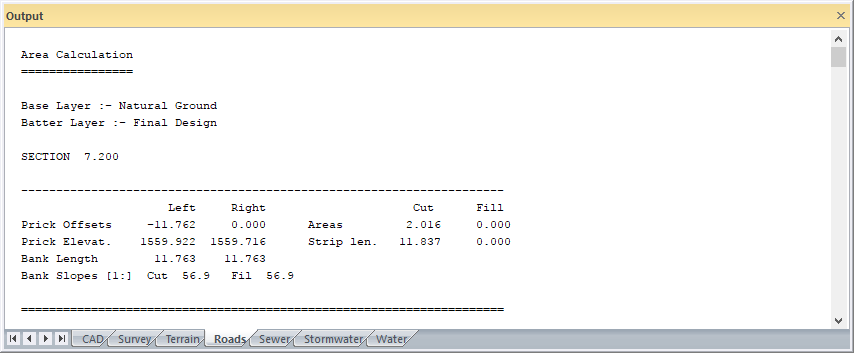 After the run, the outer batter slopes will be stored in the index and the Area Indicator will be set to '1' (See Road INDEX).