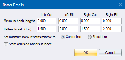 If Batters is selected, there must be at least three points present in the floating layer so the batters can be applied to something. A preliminary pass through the Vertical alignment and Edge Levels is the recommended way of getting these three points.