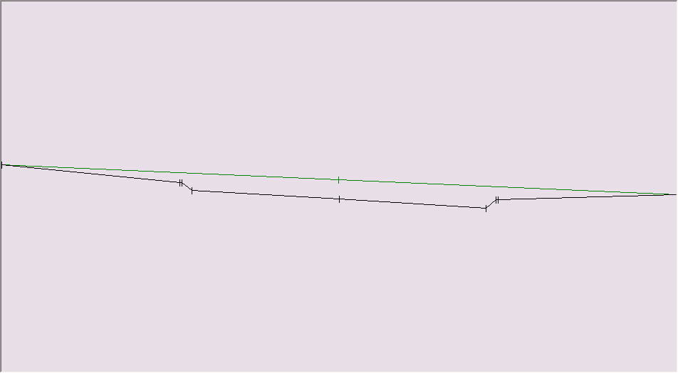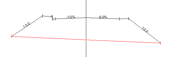 This function permits the direct calculation of areas from a single layer, but creates another theoretical layer as a straight line between the extremities of the first one. In the example below, the Final Design layer was used to create another layer represented by the red line.