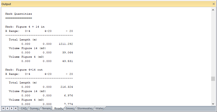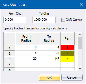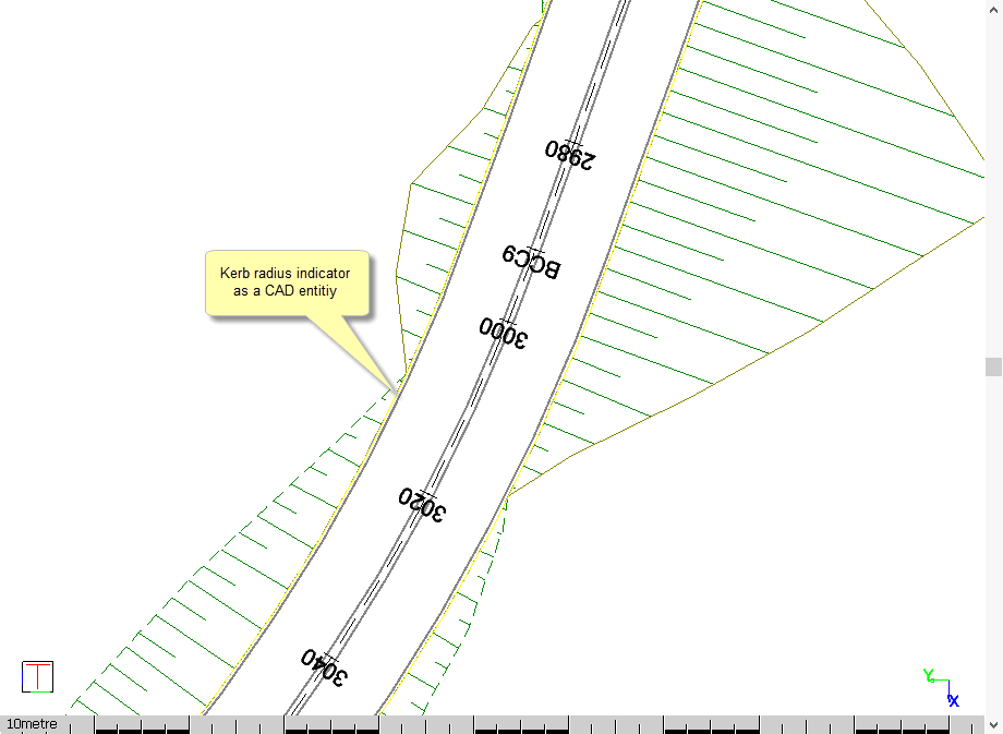 If you had selected the CAD Output option, additional CAD entities would indicate the kerb radius.