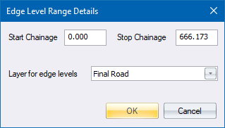 Enter the start and stop chainages and select a layer for the edge levels, and then click OK.