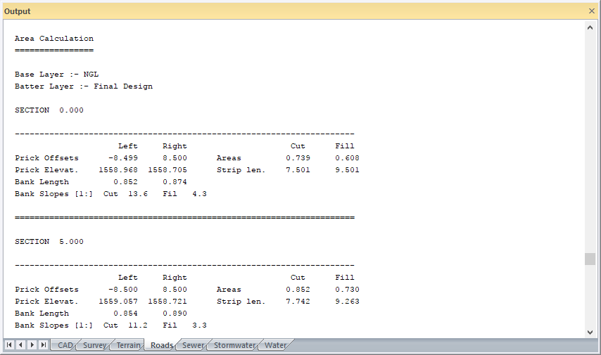 Area calculation of existing cross-sections.