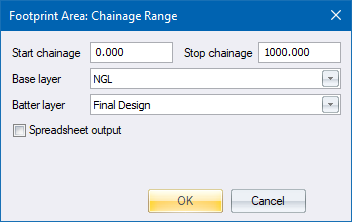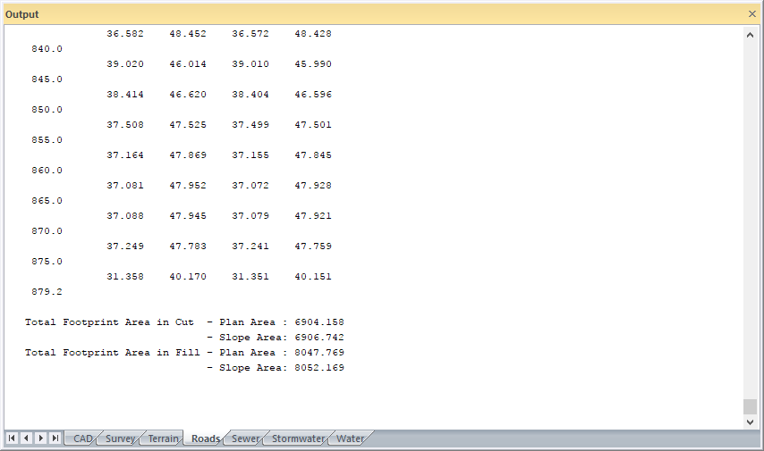Click OK to calculate the road footprint area in cut and fill.