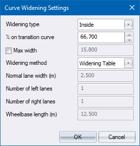 Specify how the automatic curve widening is applied. Settings can be customised to meet various design standards.