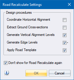 Select which design procedures are recalculated during the Road Recalculate function.
