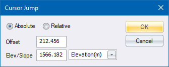 Select this option to shift the current cursor position by the values entered into the Offset and Elev/Slope edit boxes. |