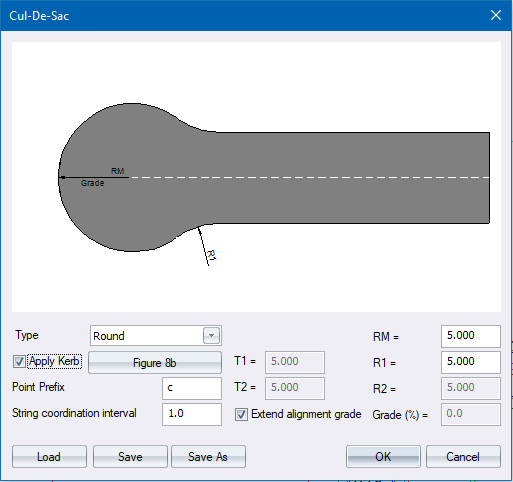 Refer to the diagram and specify values for the cul-de-sac layout. |