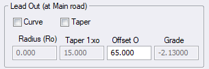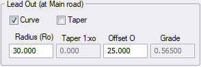 Enter the radius of the lead out curve. Only available if the Curve checkbox has been selected. |