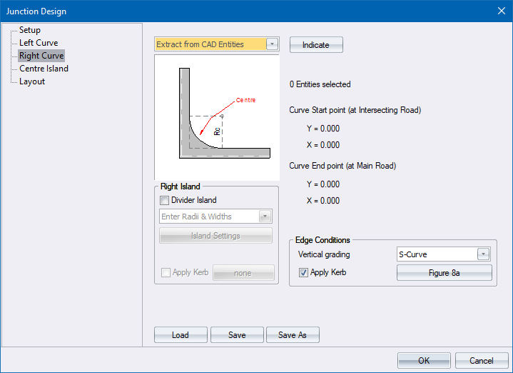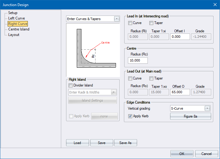 Enter Curves & Tapers - Specify the edge details of the intersection. Data requirements are the same for both left and right curves.