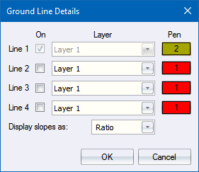 Specify ground lines for pipe long section data.