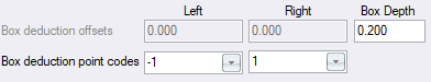 Enter the left and right PLCs between which the box should be deducted. Codes can be values from 1 to 99. Points to the left of the centreline should be entered as negative values. Only available if entering details by point codes.