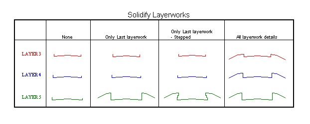 This option is only available if the Only last layerwork detail - stepped option is selected. If this option is selected, the layerworks will only be stepped when in fill. In cut situations a box cut, with a width equal to the first layerwork in cut, will be created. |