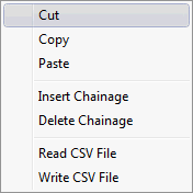 Insert a new row into the spreadsheet by means of the Chainage Insertion option. |