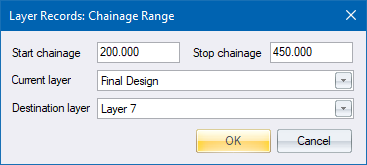 Specify the chainage range to act on.