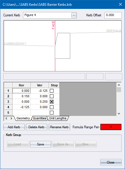 Select a kerb from the list of kerbs in the loaded kerb group file (*.krb). |