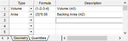 Enter the type of quantity to be calculated. If Type is set to Volume, the defined region represents an area. If Type is set to Area, the region represents a linear distance. If Type is Linear, it simply applies the formula to the linear distance. |