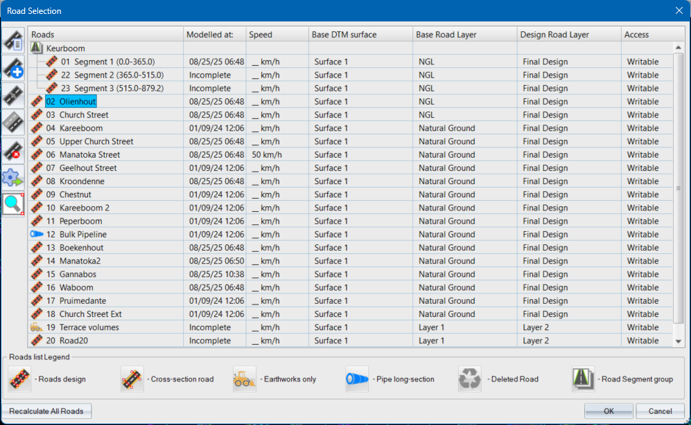 Any road file that you wish to work on has to be loaded from this item under the Roads ► File option.