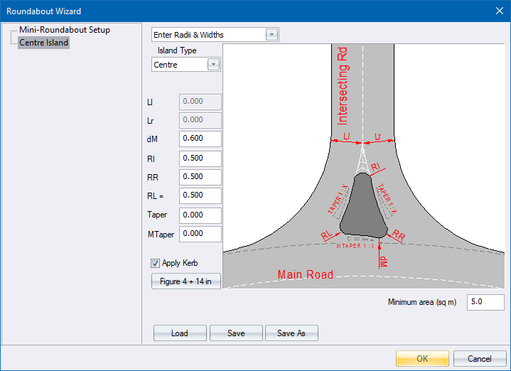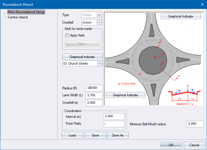 This function allows you to add a mini-circle or mini-roundabout to the roads design. You can add either a three way or four way circle.