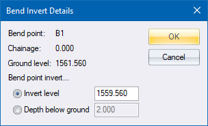 When the routine is selected, you are prompted to enter the layer to be used for the ground layer. For every manhole on the pipeline, you are prompted for an invert level or the depth below the ground level.