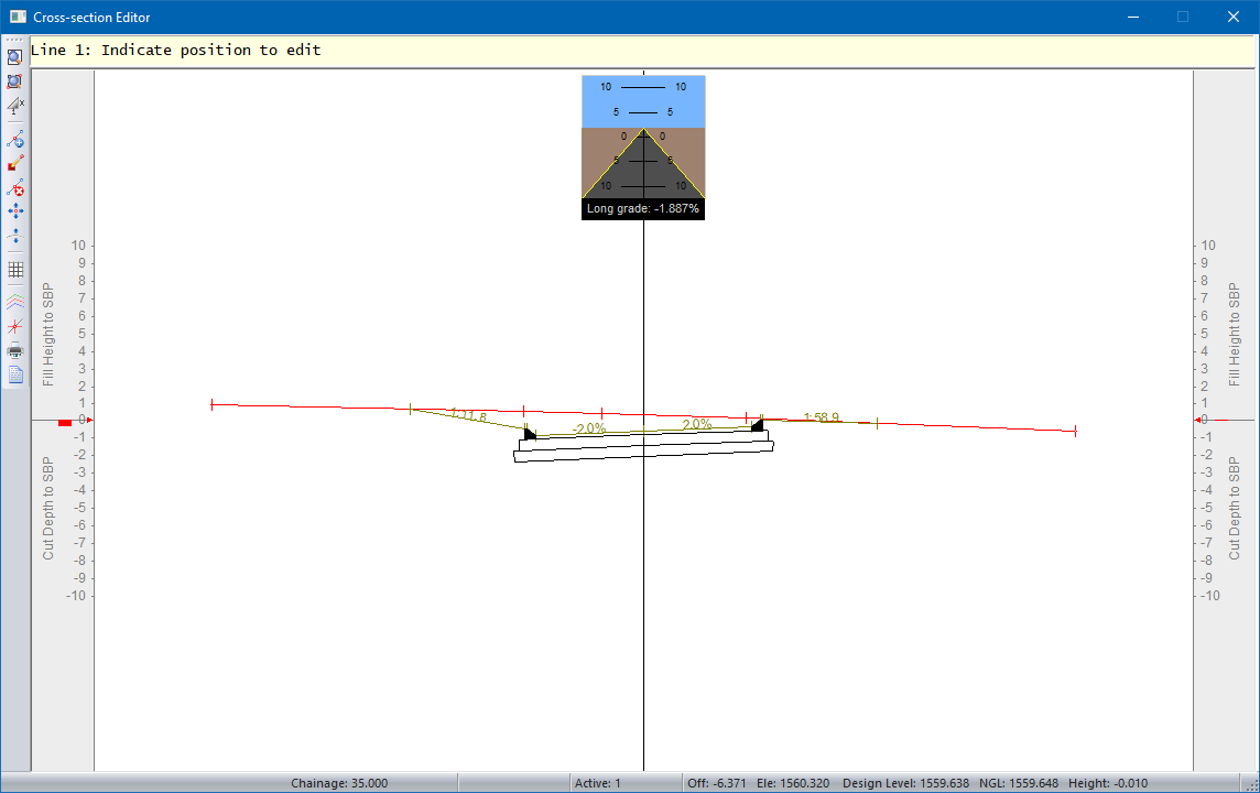 Click on a point in the current cross-section in the Road Cross-Section window.