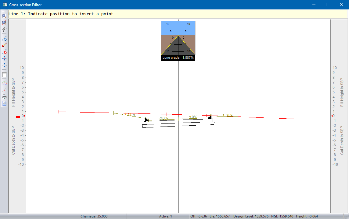 This function allows you to insert a new point in the current cross-section. The current cross-section is the line that has been set as Active in the Section Lines.