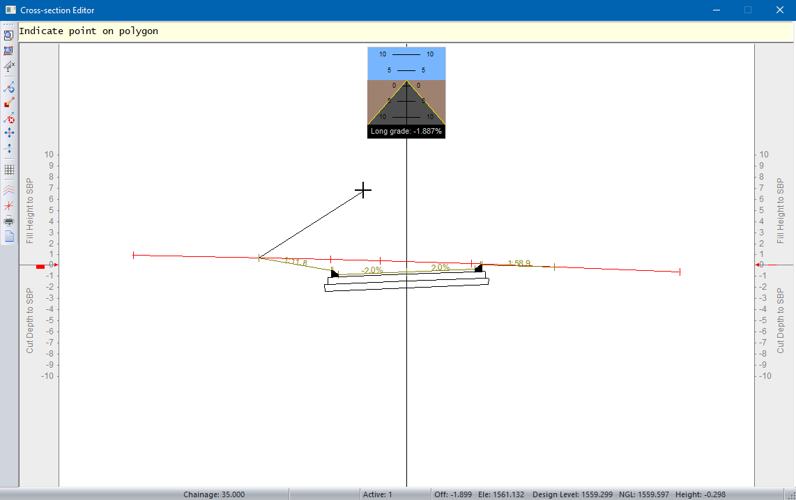 Click on a point in the Road Section Editor.
