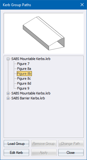 Select a kerb and click Edit Kerb to activate the Kerb Editor.