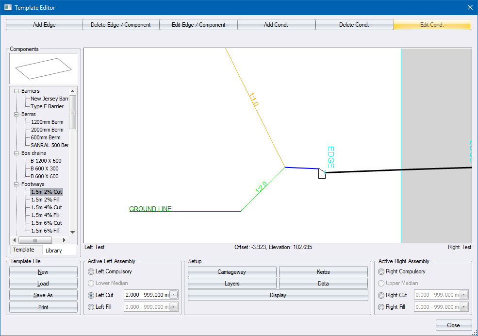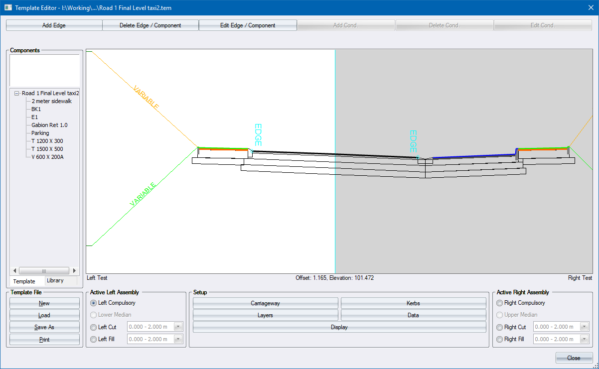 Create new road templates, or edit existing ones.
