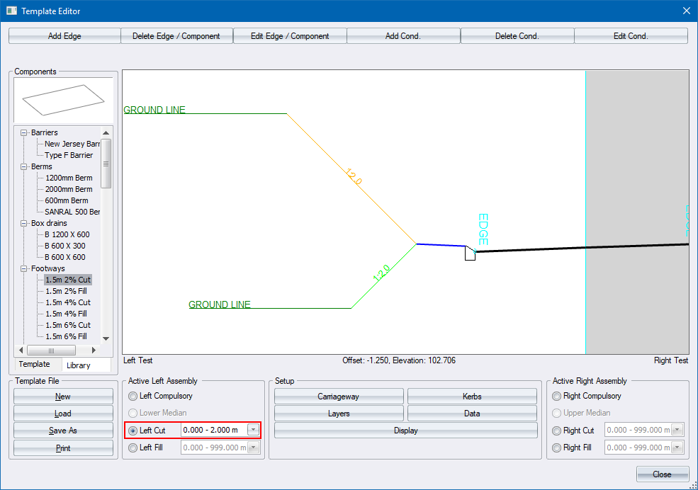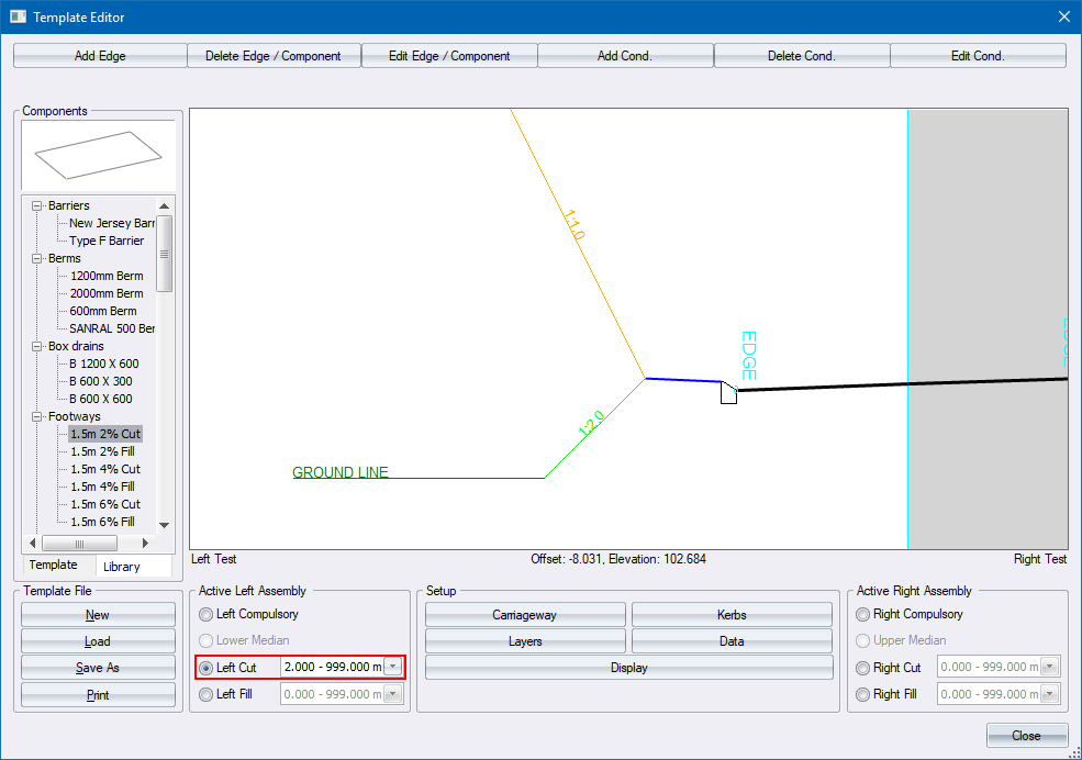 - Create a new cut condition from 0 to 2.0m and specify a cut slope