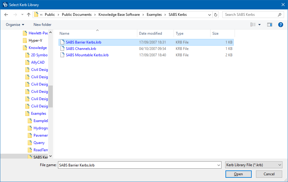 the Barrier Kerbs. Select the item and click Open.