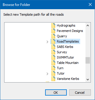 The default path is the DTM file path, where your road files are stored. Browse to the new folder where your templates reside and click OK.