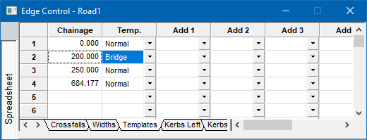 Usually a library of templates is built up in a particular directory. These templates can then be used by any user on any job. For example, the template in D:\TEMPLATES\BUS1.TEM might be called template '2' in roads 1 and 5, but be called template 1 in road 4.