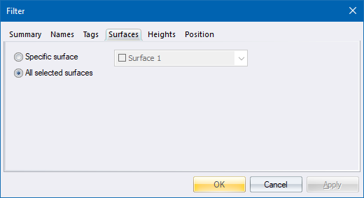 Select this checkbox to have the filter applied to all visible and enabled surfaces. Points on disabled surfaces remain unchanged. |