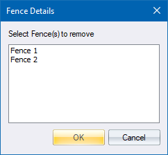 Select one or more fences to be used to filter data processing. To select more than one fence, click in conjunction with holding down the [Shift] or [Ctrl] key in the normal Windows method. |