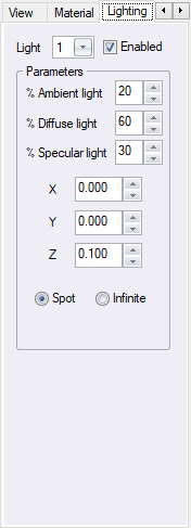 Select the Spot option to have the selected light behave like a spotlight; or select the Infinite option to have the selected light behave like the sun. |