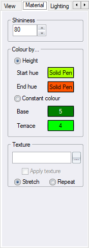Click to set the start and end hues of the range of colours that will be applied to the site when the Height option is selected. |