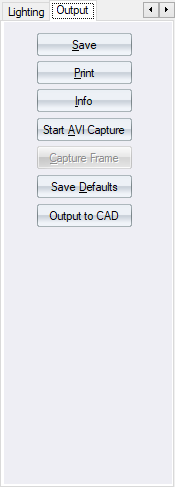 Click to have a bitmap CAD entity placed into the current project and geo-referenced to the real-world coordinates. The image will be that of a top-down view with the current lighting and material settings. The Bitmap Dimensions are displayed and you are asked for a filename to save to. |