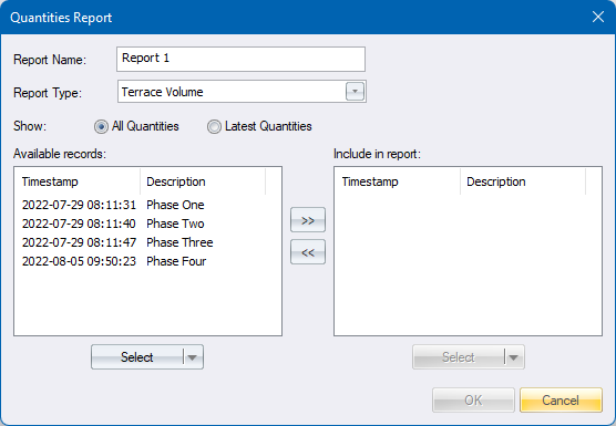 Disabled until a selection in the right-hand side list has been made. Press to accept the details to add or edit the report |