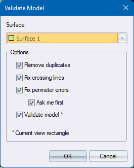 If Fix crossing lines option was checked, then the surface is first scanned for crossing lines and removed if found. If any lines are removed then the number of such lines are listed to the Output Bar.