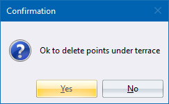 The function removes all surface points within the selected terrace. Unlike the Terrace Merge function, it does not attempt to link up any terrain lines, and it does not change the surface allocated to the terrace points.
